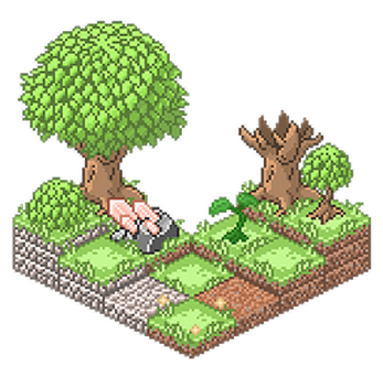 handcrafted Isometric pixel art style asset pack for indie game projects. A tile by tile world creation with a classic environment of grass, plants, trees, and more. You can create a plain of grass or make a forest.